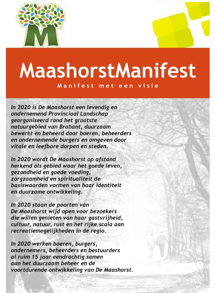 The MaashorstManifest from 2009 describes the target image for 2020, with appealing proposals for possible implementation. The aim of the MaashorstManifest was to further expand and broaden the original vision from 2005. This also included a current implementation strategy. The four themes from the MaashorstManifest are depicted in a vision map.