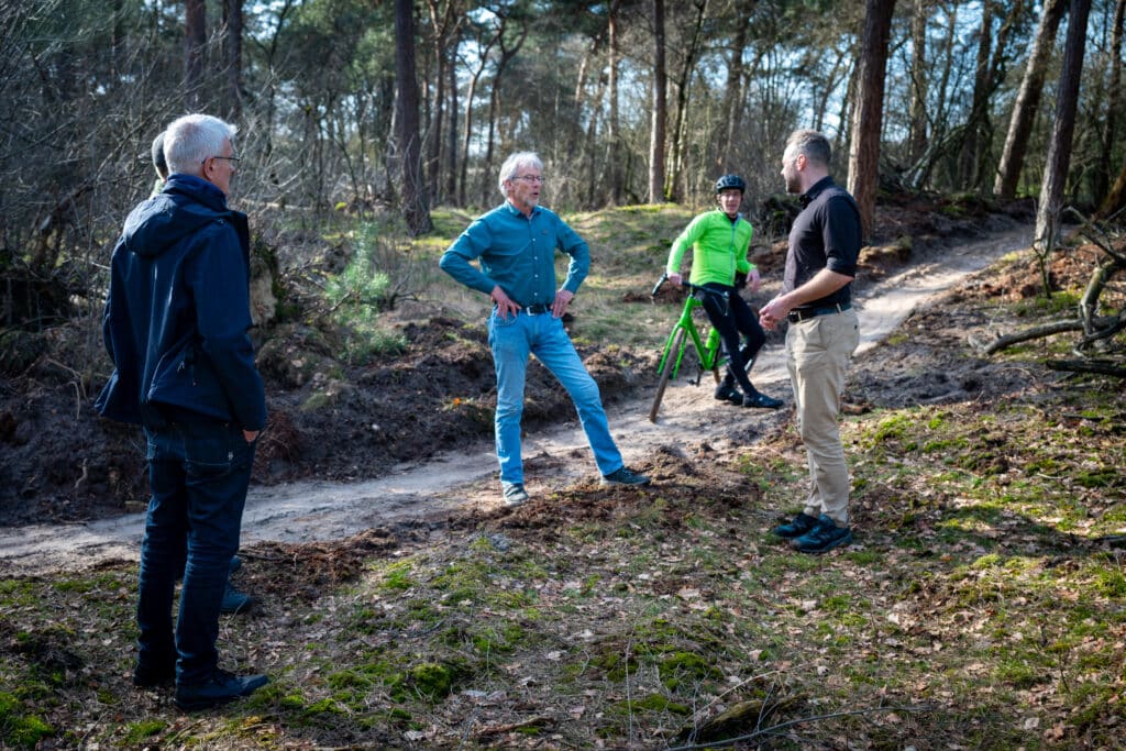 De blauwe en groene MTB-routes in natuurgebied De Maashorst zijn verlegd. Wethouder Jeroen van den Heuvel bekeek donderdag 26 februari de nieuwe trail. Samen met vrijwilligers die hieraan meewerkten. De vrijwilligers ontvingen een cadeau als dank voor hun inzet.