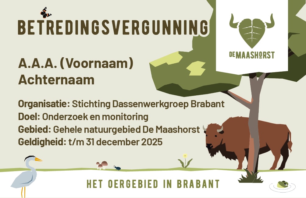 De houder van deze vergunning mag alleen namens de genoemde organisatie voor het genoemde doel en gebied actief zijn buiten de paden en wegen. Het is verboden om met deze vergunning voor andere of privé activiteiten  buiten de paden of wegen te gaan. Dan gelden de normale toegangsvoorwaarden van natuurgebied De Maashorst en Algemene Plaatselijke Verordening. Als misbruik van deze vergunning geconstateerd wordt dan kan hij ingenomen worden.