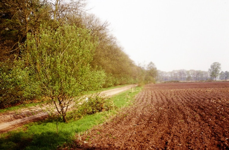 Op deze foto zie je het ‘Brobbelbiesweitje’ in 1988. De naam komt van brobbel (Brabants woord voor opborrelen – wijst borrelt hier op) en bies – een plant met lange, dunne stengels die hier groeide. Je ziet op de foto nog de trekkersporen. De grond is opgekocht en toegevoegd aan het begrazingsgebied.